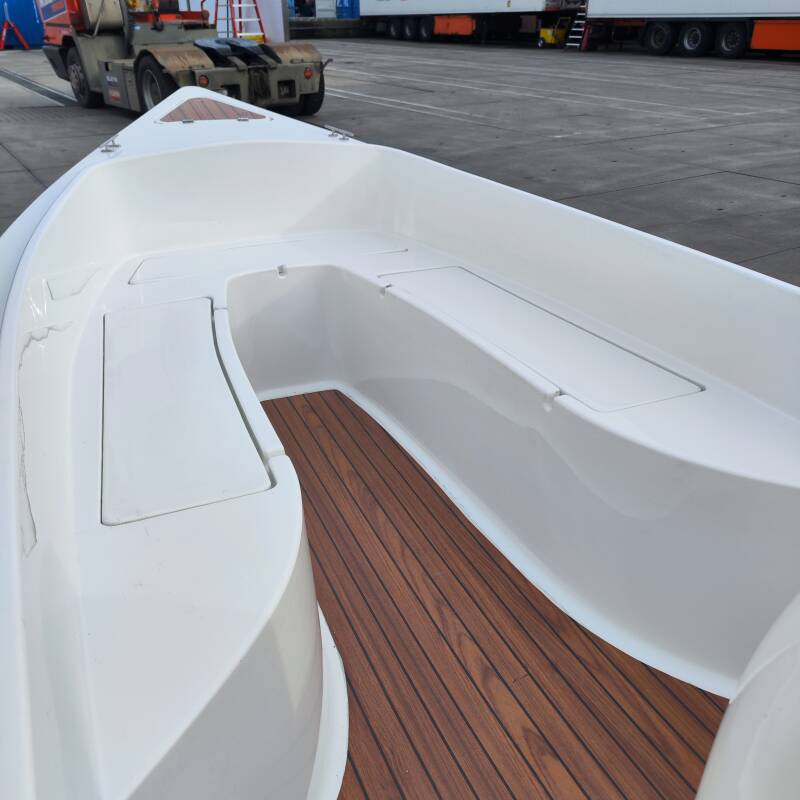 Leverbaar in iedere gewenste kleur. Er zijn verschillende opties mogelijk: buiskap, kabelaring, banken met opbergruimte, rondzit, stuurconsole, divers dekbeslag, bilgepomp en een motor tot 15pk. Elektrisch is ook mogelijk.